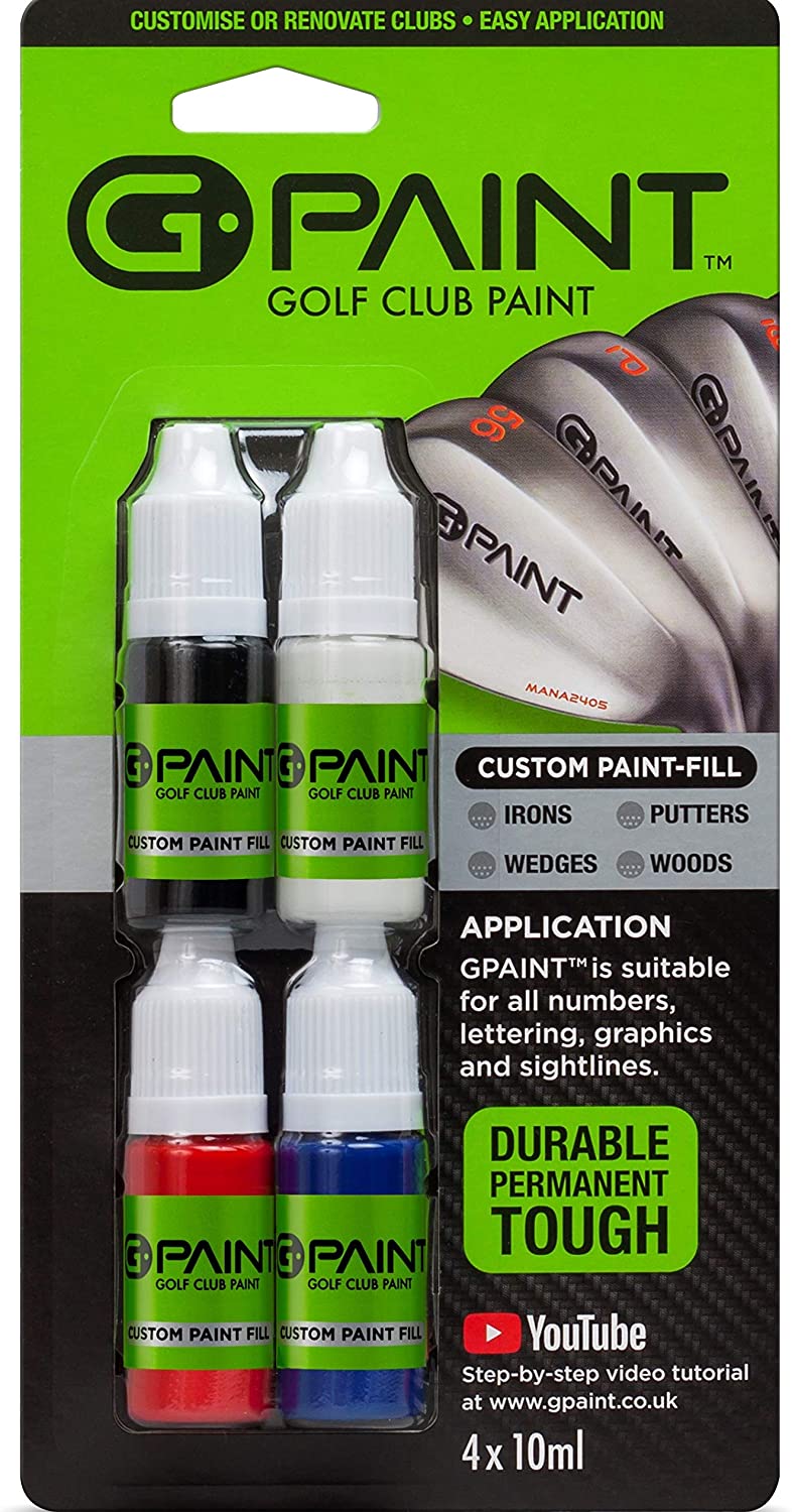 G-Paint Golf Club Paint - Touch Up, Fill In, Customise or Renovate Your Clubs - 4 Pack of 10ml Bottles. Black, White, Red & Blue
