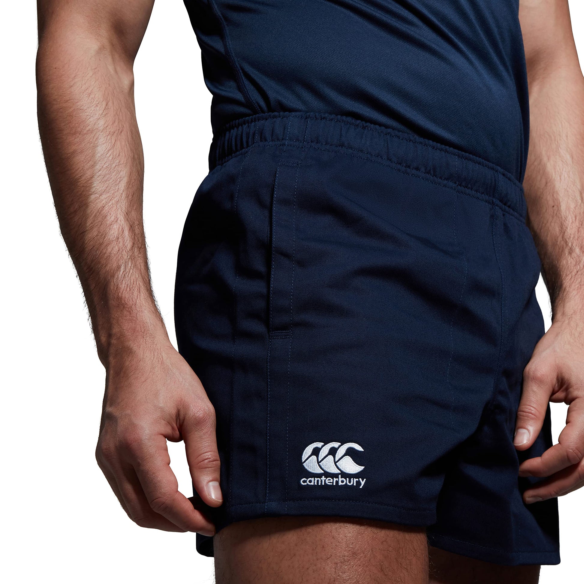 The senior cotton short is an excellent quality traditional cotton drill rugby short with pockets, elasticated waist and drawcord. The pockets are taped for increased strength. The cotton short is reinforced with "twin needle" stitching in the areas of greatest stress. 100% cotton drill rugby short.