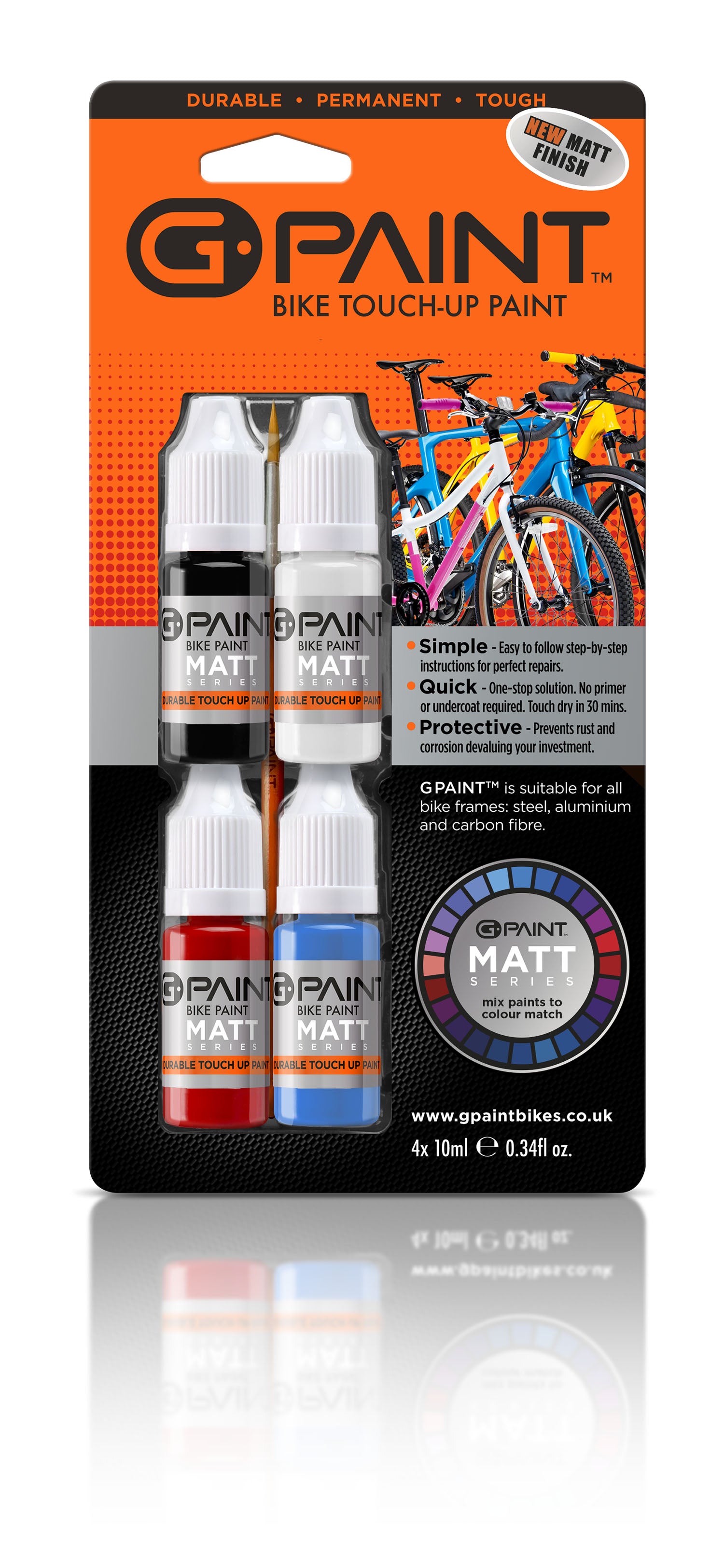 G-Paint Bike Paint - 4 Pack of 10ml Bottles - Touch-Up Paint Kit For Scratched or Chipped Frames