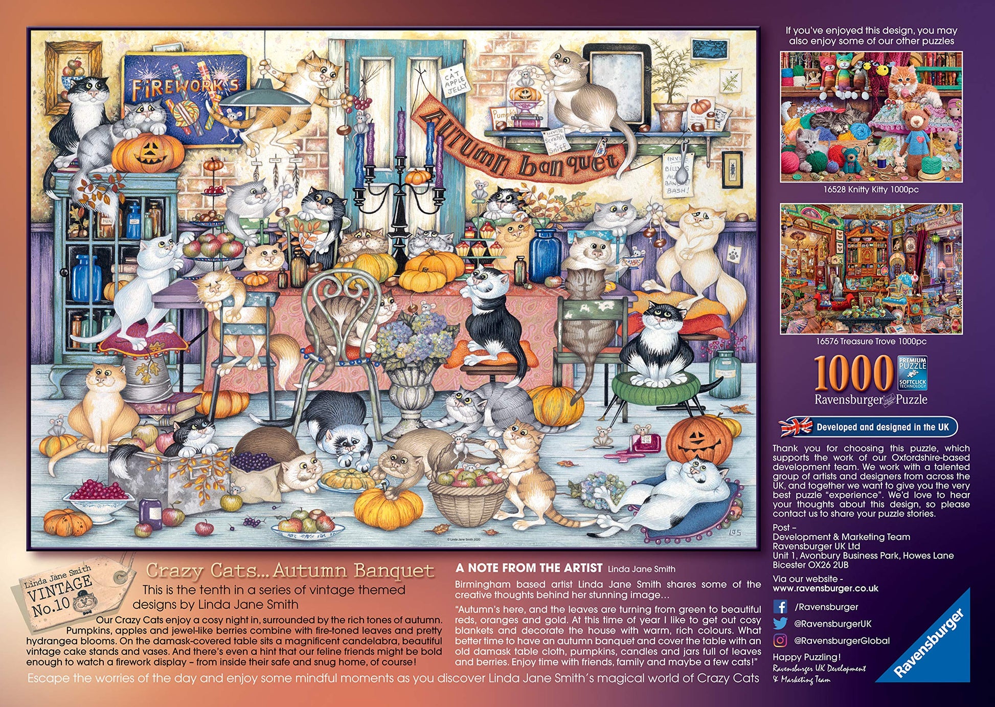 Ravensburger Crazy Cats Autumn Banquet Jigsaw Puzzle 1000 Piece for Adults and Kids Age 12 and Up