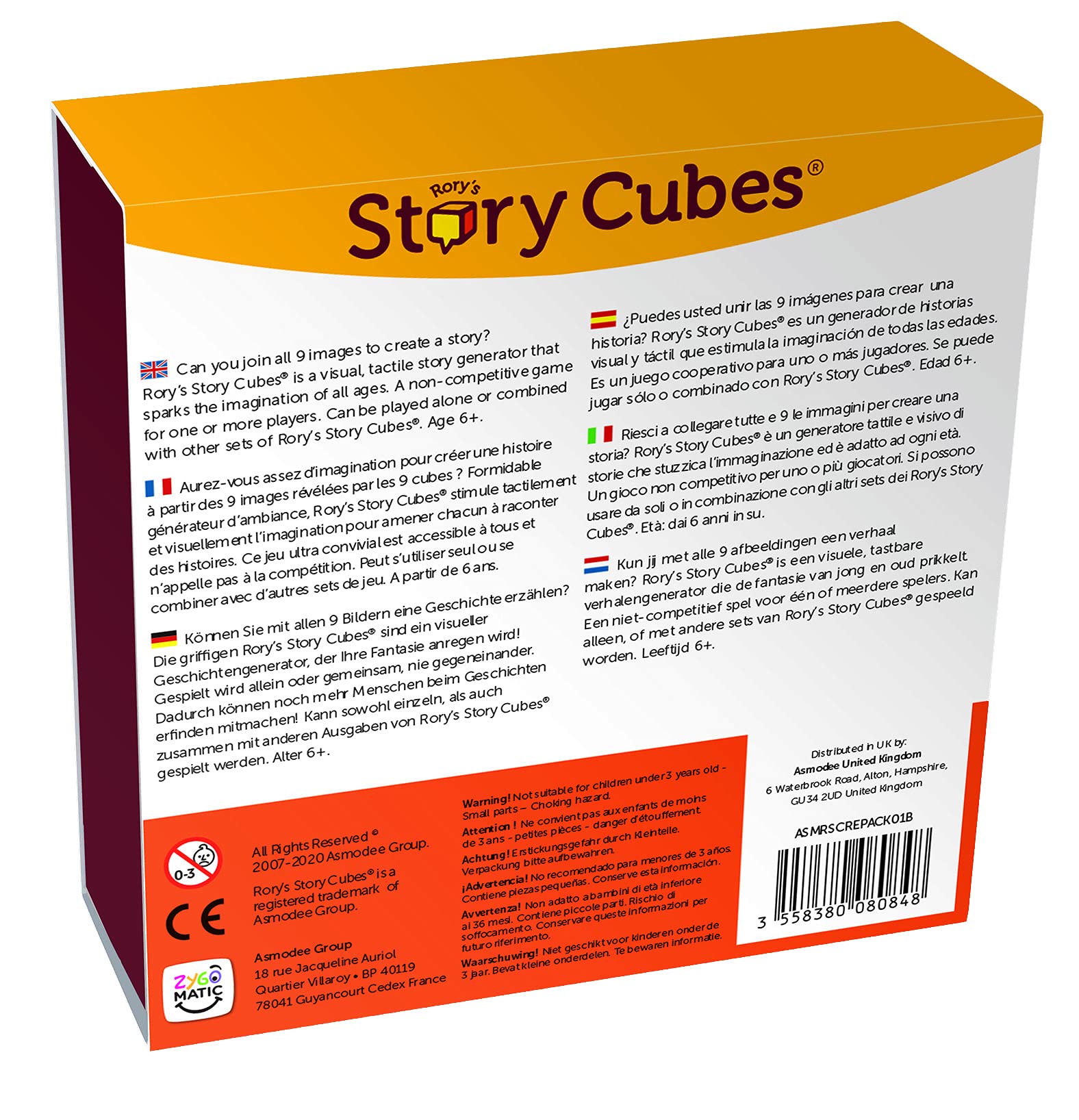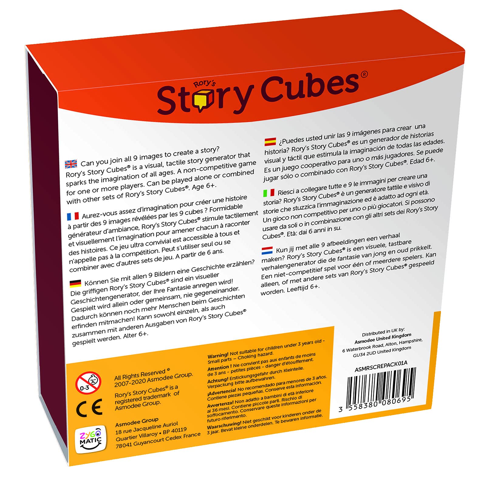 - Contains main Rory's Story Cubes game along with 6 expansions from a random selection!