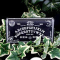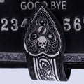 From the untamed imagination of our in-house design team, this embossed Purse is available exclusively through Nemesis Now. Spirit boards have long been one of the most powerful occult tools there is. Bordered with intricate baroque designs, the background is black and has the alphabet marked out in an arc. Each side of "Goodbye", two ornate planchettes are pointing towards the centre, as if ready to move. The design also includes numbers 0 to 9 and the words YES and NO, as well as a warning to use with caution - the power of the spirit world is not something to take lightly. The beautiful embossed detailing enhances the magic and creates a striking 3D effect.