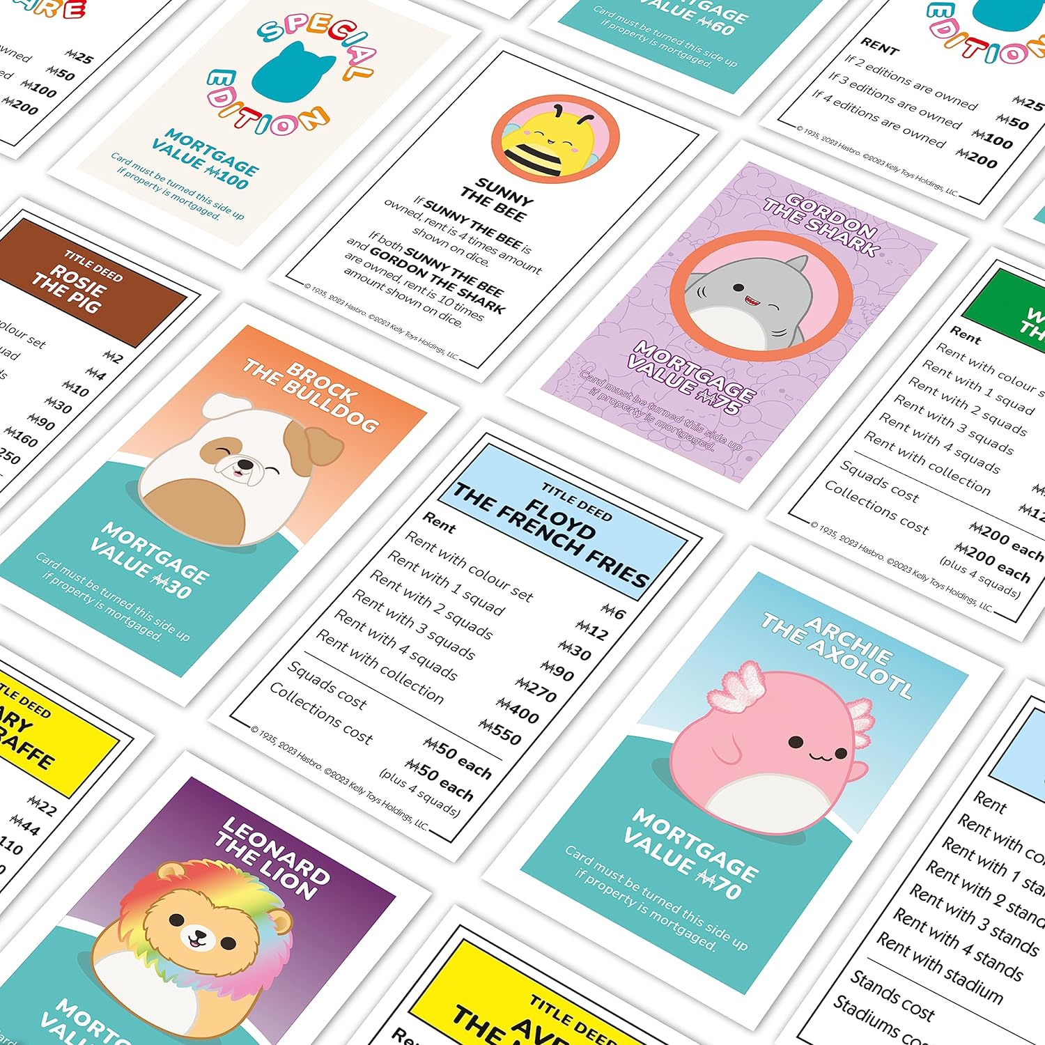 MONOPOLY WITH EXCLUSIVE PLUSH: This new Squishmallows edition of Hasbro's classic board game Monopoly is perfect for 2–6 players and makes a great gift for fans aged 8 and up