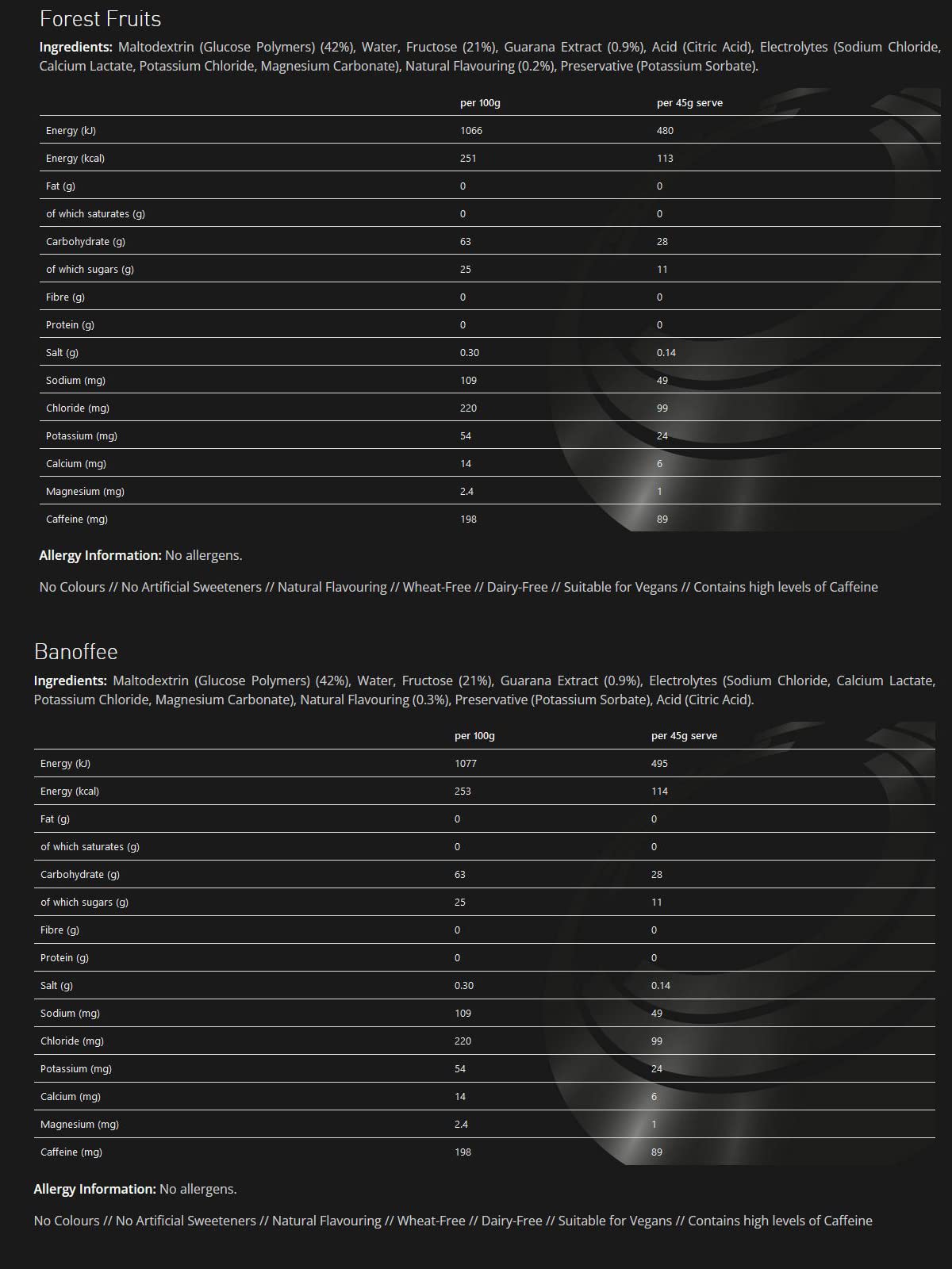 - This gel also contains 89mg of natural caffeine delivered via Guarana Extract. Caffeine has been found to increase alertness, mental agility, muscle function and assist the fat-burning process among other benefits. Please note that this product contains HIGH LEVELS OF CAFFEINE and should be used alongside our regular non-caffeinated energy gels to achieve optimal performances.