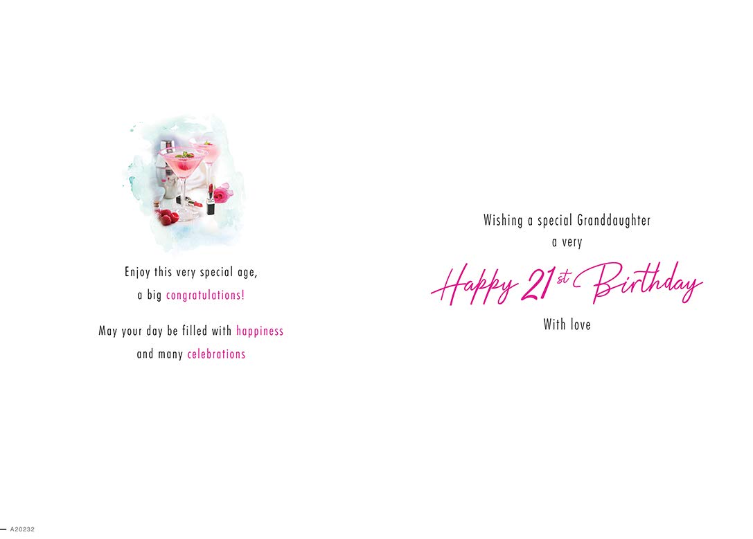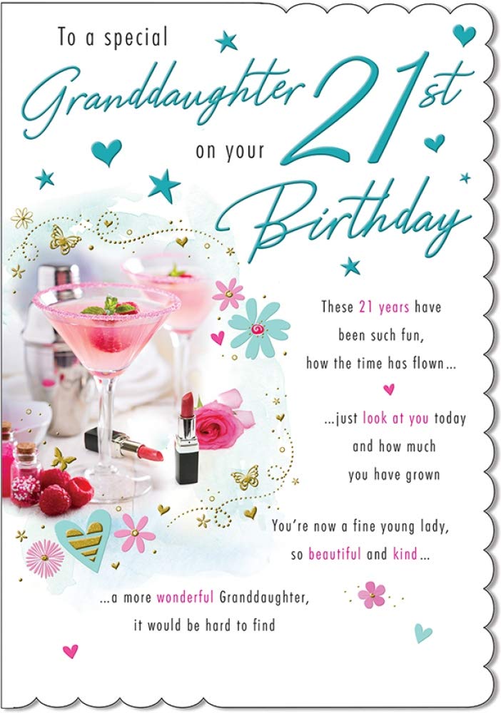 Traditional Milestone Birthday Card Age 21 Granddaughter - 9 x 6 inches - Piccadilly Greetings