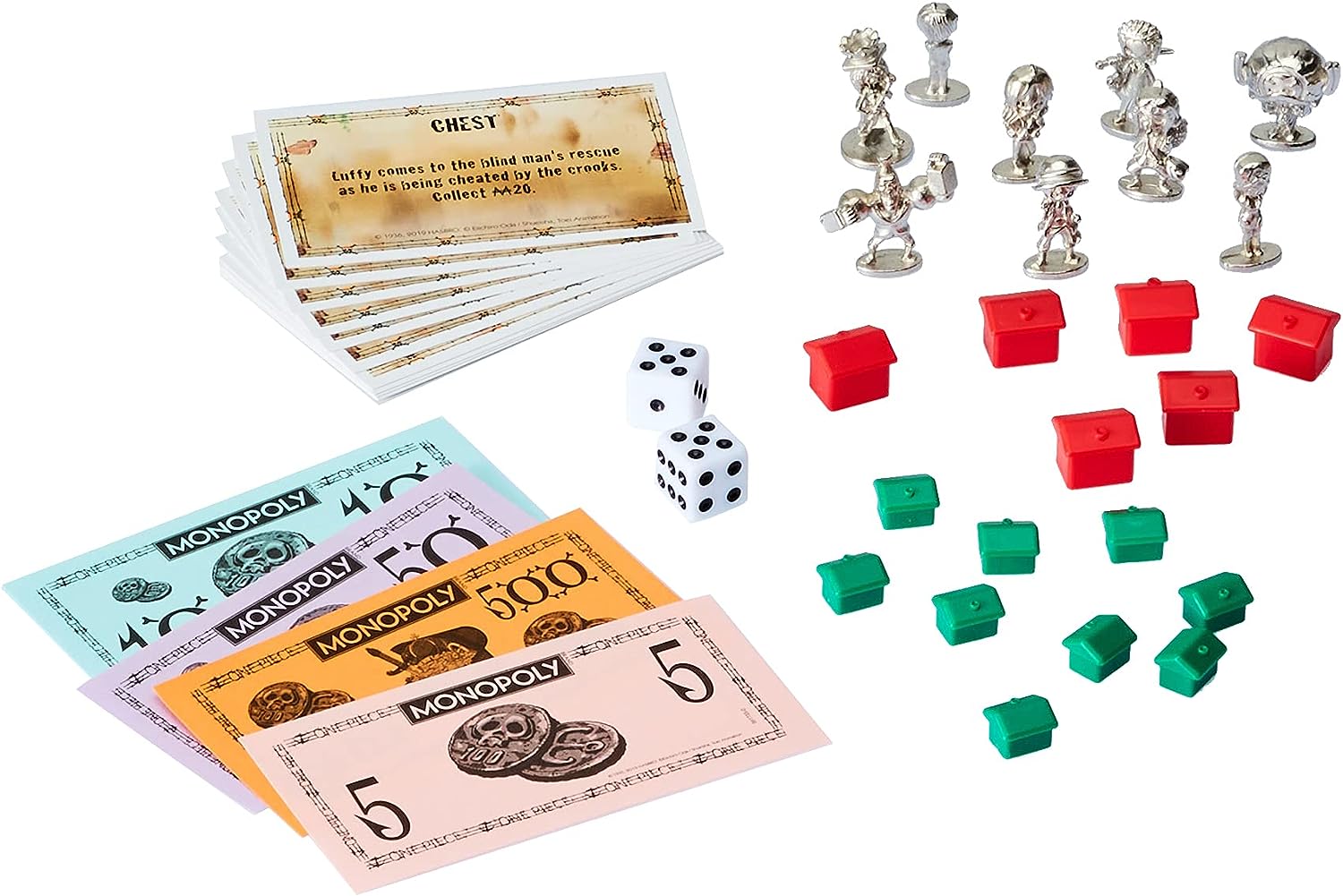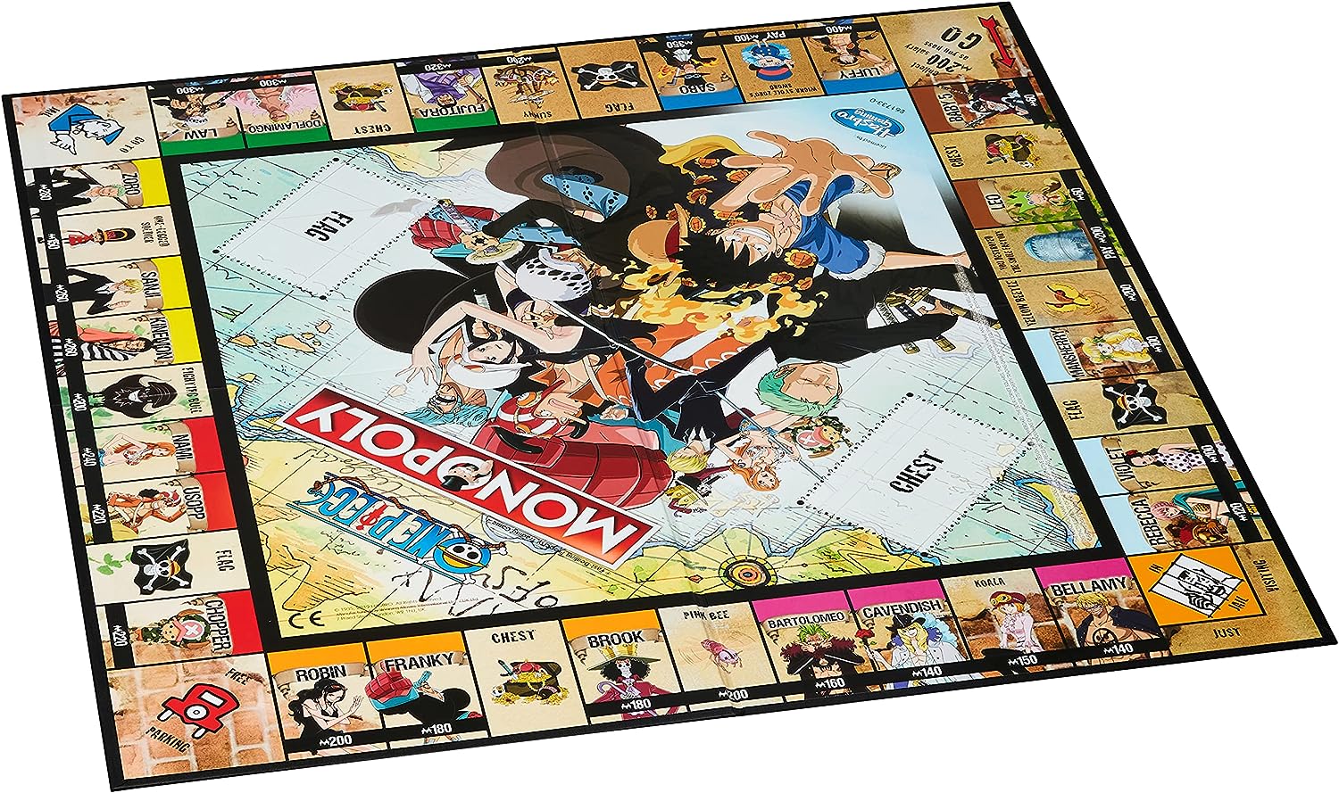 Includes - Exclusive Game Tokens: Choose your favourite token, tour around the board accumulating fortunes, but watch out for taxes, jail and bankruptcy; Exclusive Board - Exclusive board reflecting all your favourite characters from the One Piece anime; Custom Cards - Advance to your favourite characters from the One Piece anime - will you owe rent or reap the rewards?
